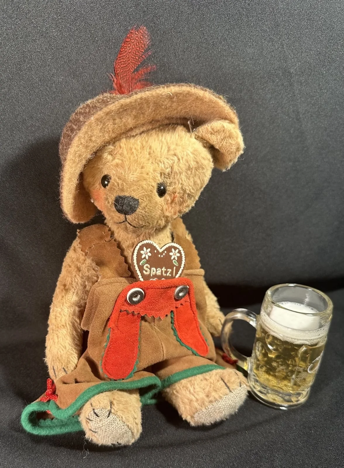 Rudi Rallala mit Lederhose und Bierseidel – ca. 24 cm groß, aus Viskose, 5-fach gegliedert. Preis: 129 €